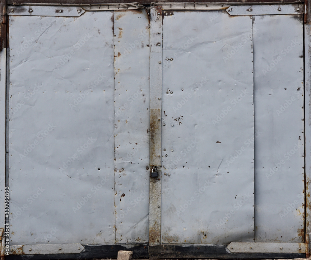 Gray Metal Double Door Old Garage Door Paint Peeling Off Stock Photo Adobe Stock